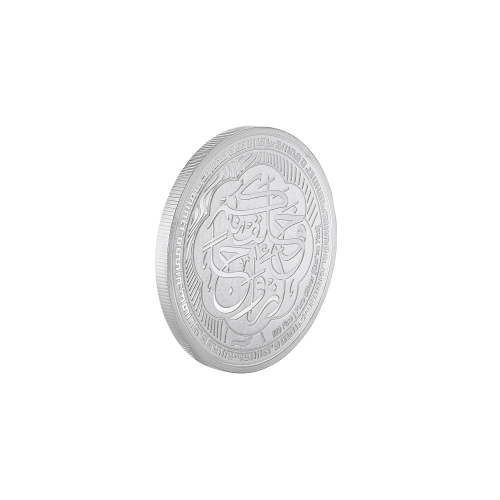 - Kufic Arabic Edge Inscription — Every coin carries the Kufic inscription: في الدنيا والآخرة — “In this World and the Hereafter” — a permanent pledge, struck in silver.
